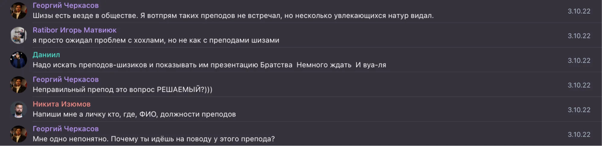 Если же преподаватели не соглашаются и не готовы поддержать подобные группы, руководство Братства может попробовать договориться иначе. Так, во внутренних чатах братства обсуждали открытие клуба в Херсоне: